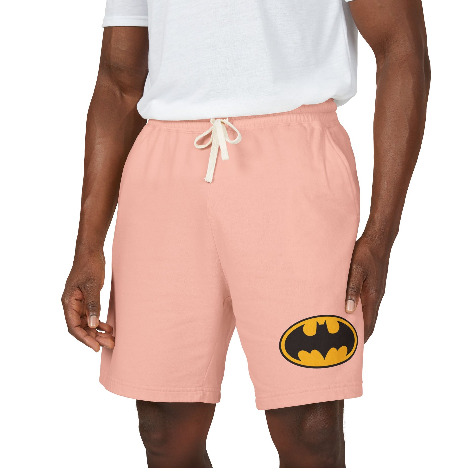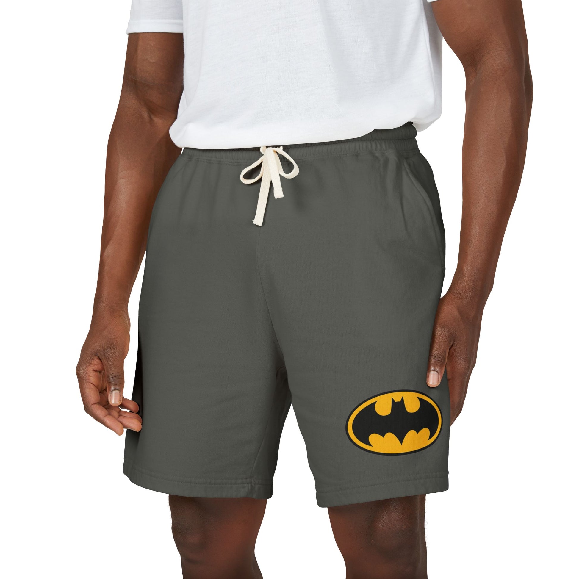 Batman Logo Fleece Sweat Shorts — Lightweight Garment-Dyed Lounge Shorts