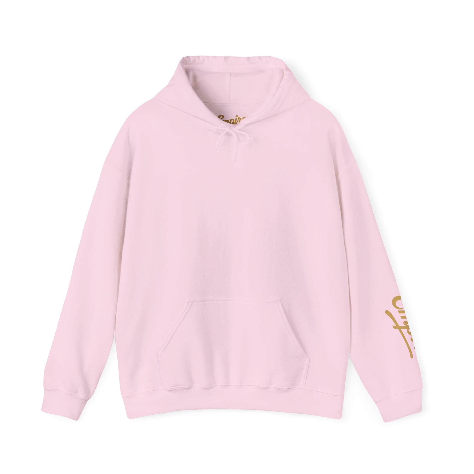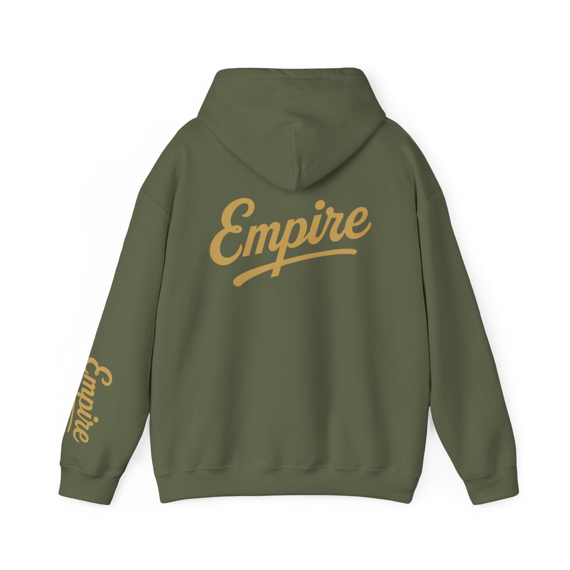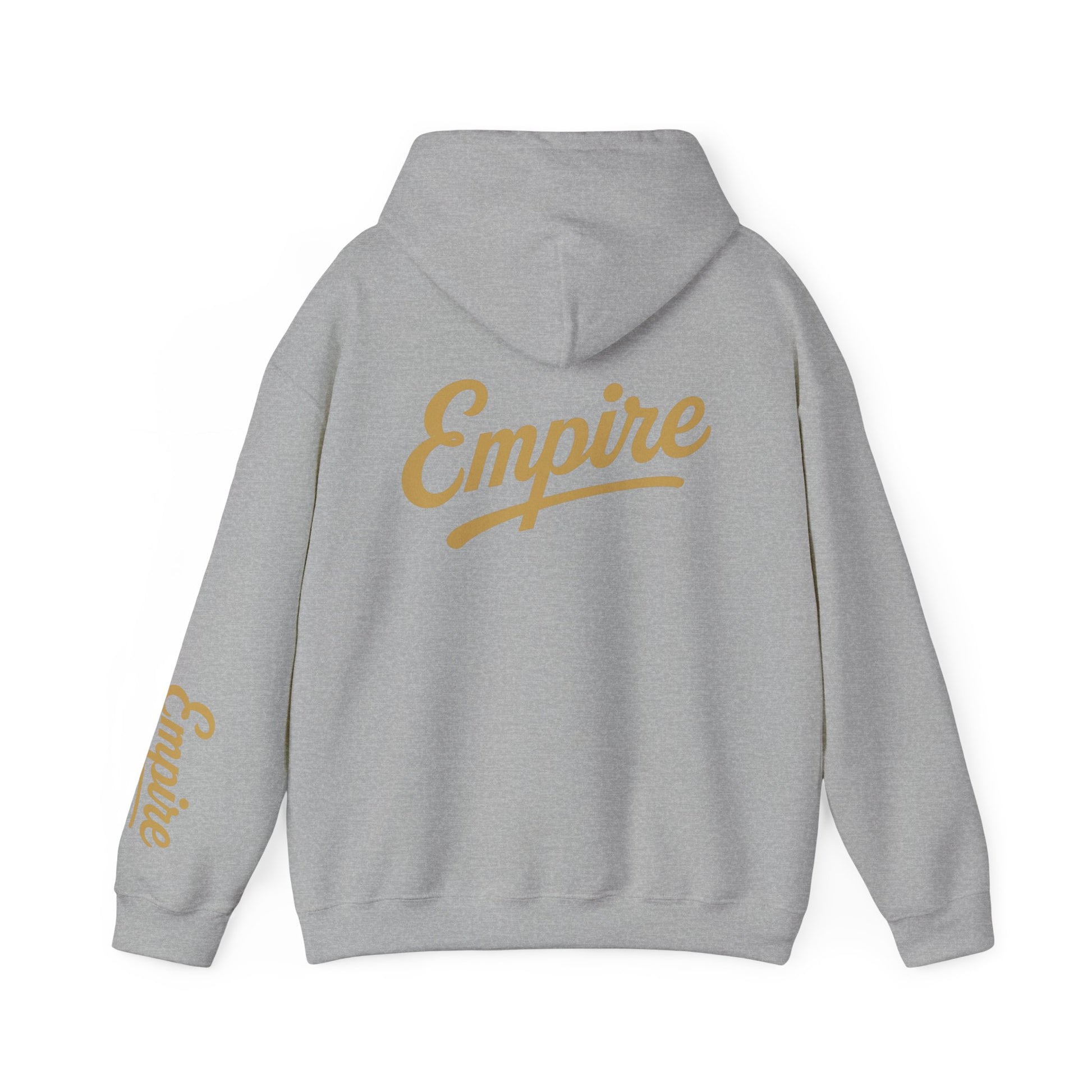Make a bold statement with the Empire Logo Hoodie, a clean and confident design that blends streetwear energy with timeless simplicity. Featuring a large gold Empire logo across the back and matching sleeve detail, this hoodie celebrates ambition, creativity, and modern urban style.
